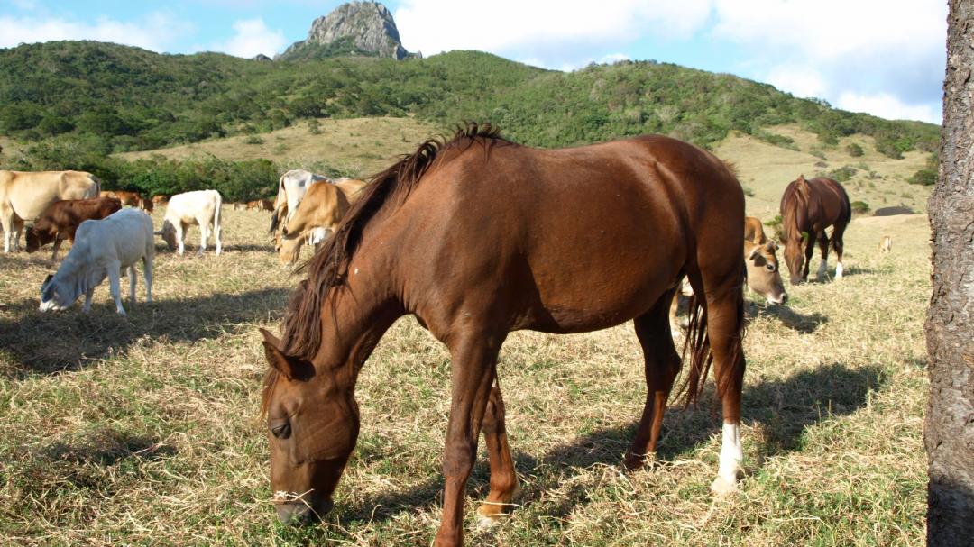 剛好看到放牛 跟 馬出來吃午餐