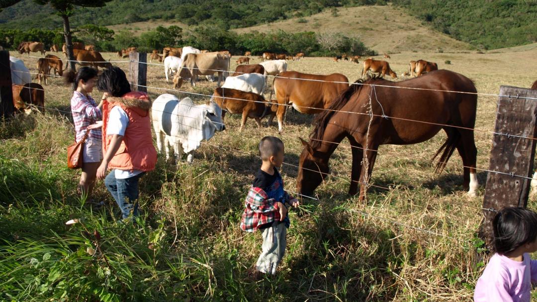 墾丁牧場位於大尖山下的草原,與販賣牛肉乾的畜場試驗所合作社不同,簡單的說就是實際放牧牛隻的草原,也是玩牛的的好地方。幸運的話,還可以看到這邊的幾匹野馬喔!