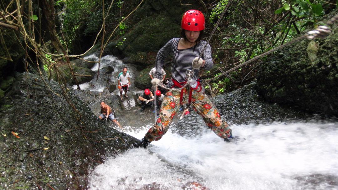 除了沿著步道登上瀑布,你也可以選擇以溯溪的方式來享受瀑布的美景,穿著潛水衣沿著溪流直上瀑頂,十分好玩。