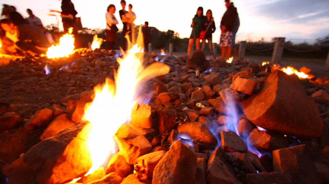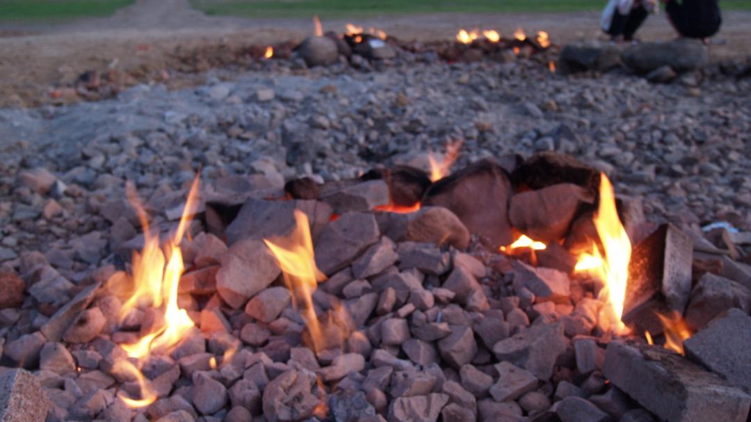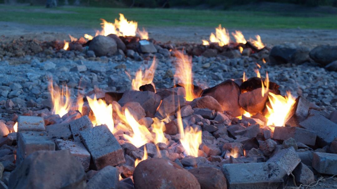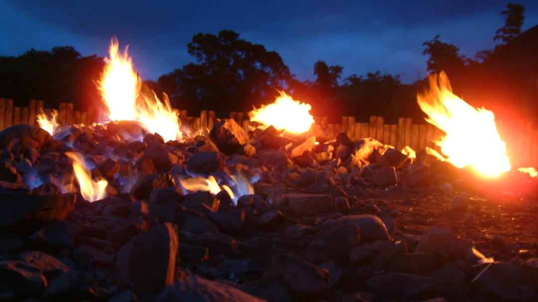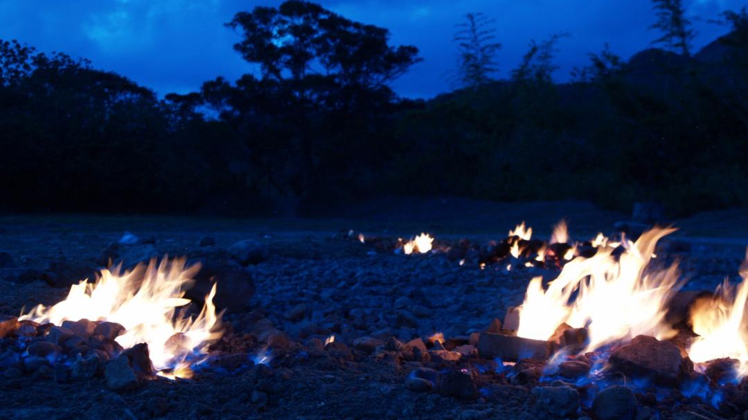 Because of natural gas coming out from the rifts of the ground, a fire forms and burns aII day. You can try to light the fire by using a lighter on the rifts, and you wiII see a huge firebaII appear from your lighter. lt is quite interesting and amazing.