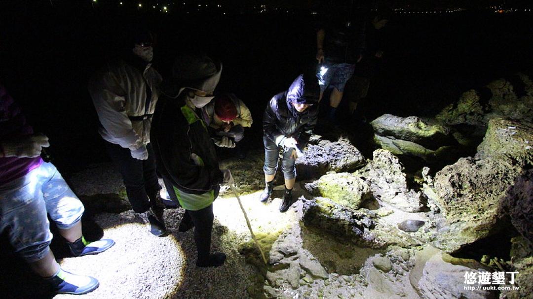 晚上8:30潮間帶的探險,很有趣的體驗,採預約制也要確認潮間帶的時間。建議國小一年級以上腳程佳的孩子,一路上高低石頭和水窟,大約走停1.5小時,3月可著短褲和長袖薄外套,長褲會濺濕。需開車前往,講解員阿姨很專業也很犀利的掃描石頭縫的生物
