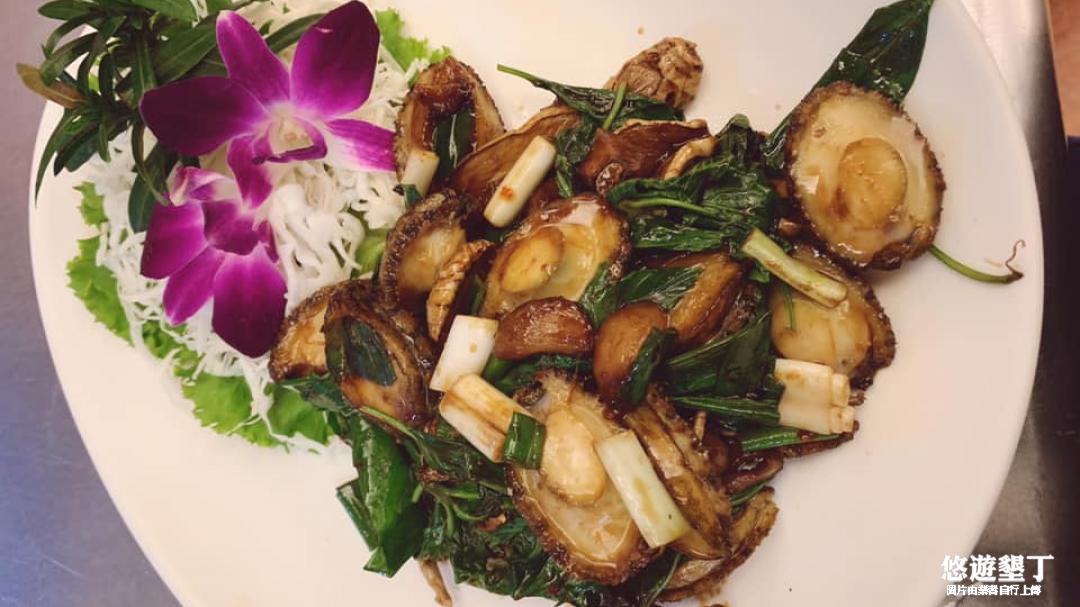 新鮮美味、上菜超快速的在地快炒海產店。點餐內容為鮭魚生魚片十片、蒜絨豆腐、珍珠肚(石斑魚肚)、雨來菇、白灼蝦、醬爆帆立貝,份量誠意十足,三人吃實在略多,1300元有找。個人最推薦在地特色的雨來菇,還有吃起來神似薑絲大腸但是健康許多的珍珠肚! 店裡還有特地介紹雨來菇(上帝的眼淚)的照片