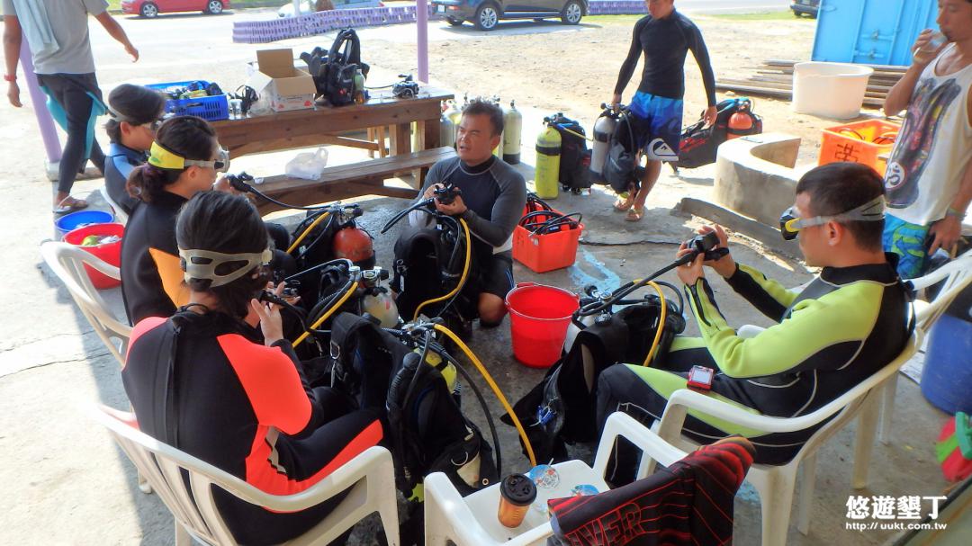 來墾丁玩水 老妹推薦這家 在後壁湖的(南勇潛水) 一早在一開店先來卡位(8:30營業) 因為適逢暑假假期 在稍晚點來來玩潛水相對的人潮變多 停車空間也是比較難停車 店家也有停車位但不多 可以停靠在路邊 店家有接駁浮潛來回的服務 (還是建議起個大早來報到) 一來太陽雖說很毒辣 但人少的話、活動範圍也比較容易 帥哥教練先帶我們夫妻 下去浮潛前的解說 及練習蛙鏡的使用及排解遇到困難的問題時 用用心及細心解說服務 岸上也備有水杯提供遊客 上岸後可以有飲用水提供給客人