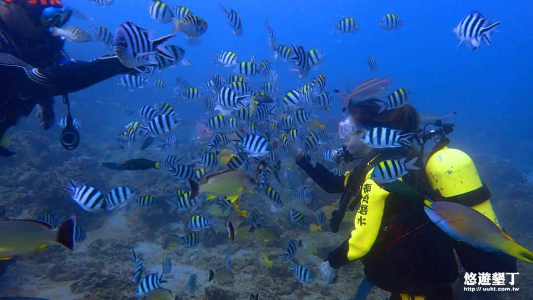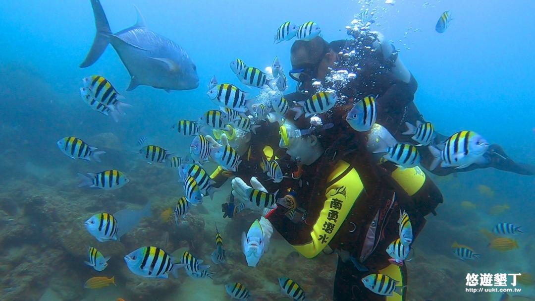 教練親切,拍照時還特意灑飼料吸引魚群, 跟墾丁其他浮潛社比,更用心, 讓人看到的魚群更多喔!